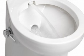 I wc di questa serie possono essere forniti con kit bidet integrato, che include il getto bidet e il miscelatore laterale già installato sul sanitario.