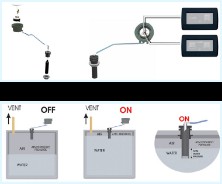 L’incremento del livello dell’acqua nel serbatoio genera una pressione che attiva il contatto elettrico del pressostato. Il tubo di rilevamento del livello dell’acqua deve essere installato nella parte superiore del serbatoio, possibilmente al suo centro. Il sensore è immune a falsi segnali dovuti al movimento dell’imbarcazione. Per una completa affidabilità, il sensore è stato progettato senza parti meccaniche in movimento all’interno del serbatoio.