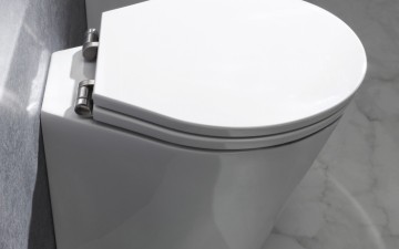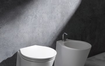 Questo wc è disponibile nella versione con getto bidet integrato, fornito senza miscelatore. Il miscelatore, da installarsi a parete accanto al wc, può quindi essere scelto dal cantiere per coordinarsi alla rubinetteria del bagno.