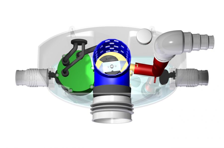 L'innalzamento del livello d'acqua all'interno della cassetta genera una pressione contro il sensore pneumatico che automaticamente attiva la pompI rifiuti solidi provenienti dal wc sono inizialmente trattenuti nel cestello filtro.
