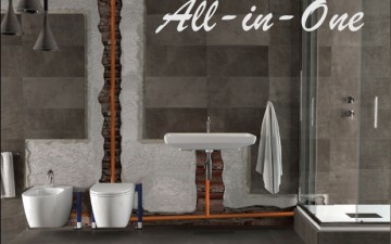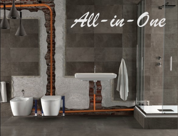 Nella nuova versione "All-in-One", è possibile utilizzare il wc Stilo Plus per allestire un bagno completo, collegando il suo bidet coordinato, ma anche un lavabo e una doccia.